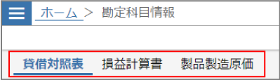 画面の開きかた:メニュー>[財務会計]>[勘定科目情報]>[勘定科目]