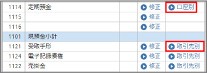 この画面では、勘定科目情報の修正や、口座別・取引先別管理の設定ができます。