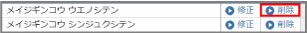 削除する口座情報の[削除]ボタンをクリックします