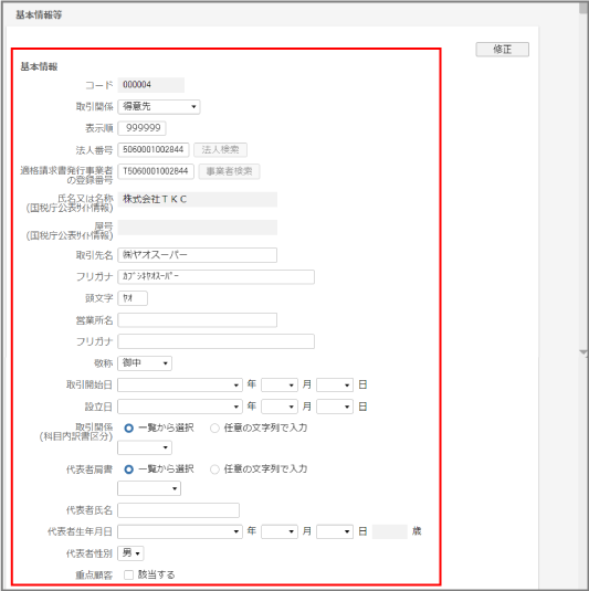 取引先情報を確認、修正する
