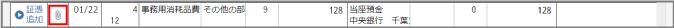 仕訳に証憑が貼付され、[証憑]にアイコンが表示されます。