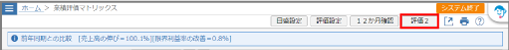 | (8) | [評価1]/[評価2]ボタン | 評価1/評価2の業績評価マトリックスが表示されます。 |