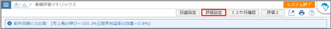 1[評価1]/[評価2]ボタンをクリックして、目盛設定を変更する業績評価マトリックスを選択します