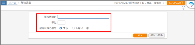 この画面では、「月末従事員数」や「販売員数」以外の単位数量を管理したい場合に、新しい単位数量を追加できます。
