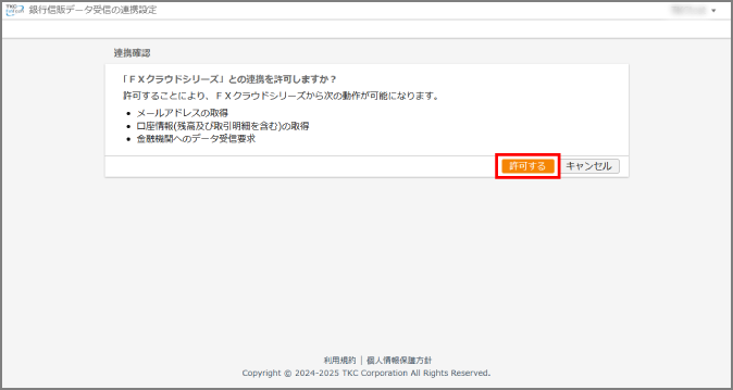 [許可する]ボタンをクリックします。