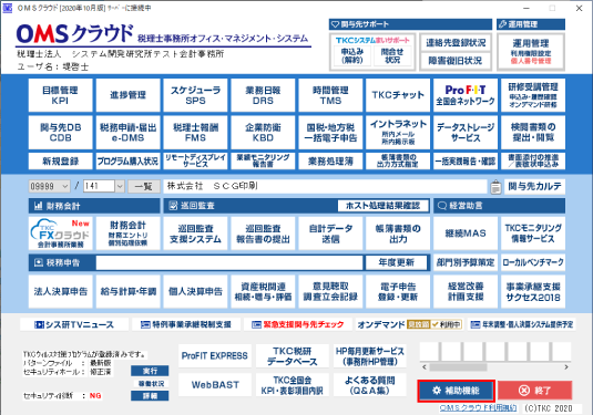 [補助機能]ボタンをクリックします