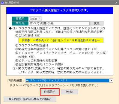 本システムを利用する関与先企業を指定し、[作成開始]ボタンをクリックします