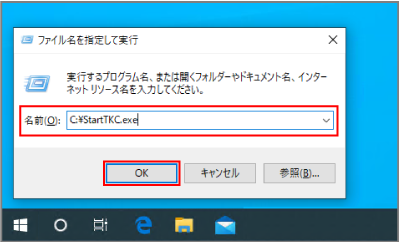 「?:\StartTKC.exe」と入力して、[OK]ボタンをクリックします