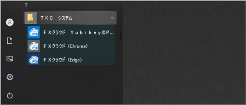 ご利用のブラウザに応じてWindowsの[TKCシステム]>[FXクラウド(Chrome)]または[FXクラウド(Edge)]をクリックします