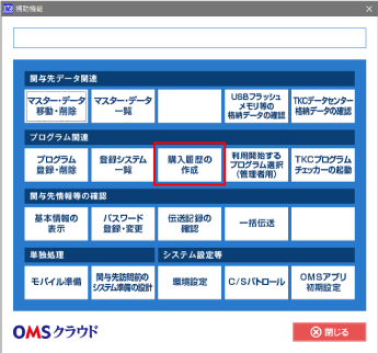 購入履歴の作成は、所長先生または利用権限を付与されたOMSユーザのみが行えます。
