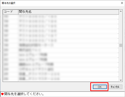 本システムを利用する関与先コードを選択し、[OK]ボタンをクリックします