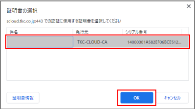 該当する証明書を選択し、[OK]ボタンをクリックします