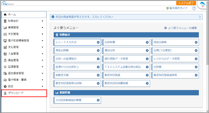 [ダウンロード]メニューをクリックします。