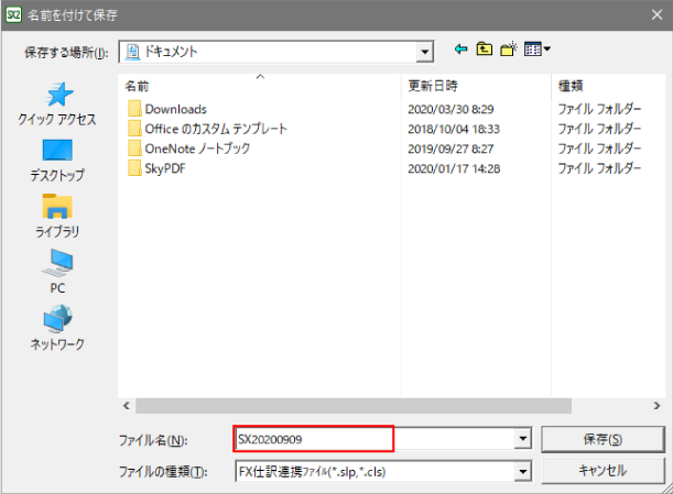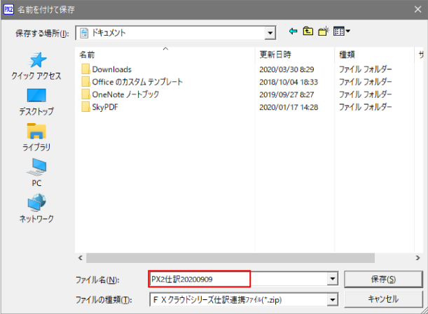 任意の場所に「PX2仕訳yyyymmdd.zip」を保存します。(「yyyymmdd」は、zipファイルを作成した日付)