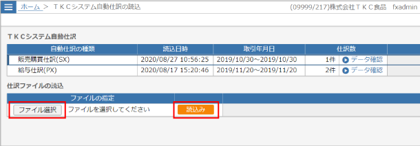 TKCシステム自動仕訳の読込画面が表示されます。