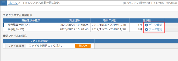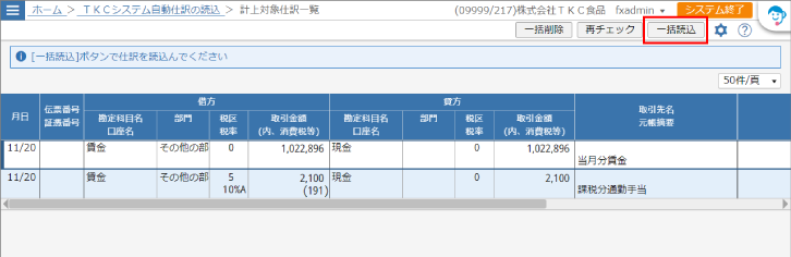 読込みが完了したら、「TKCシステム自動仕訳」欄に表示されます。