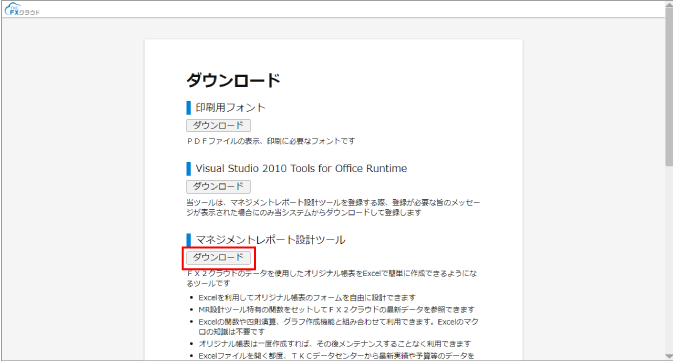マネジメントレポート設計ツールの[ダウンロード]ボタンをクリックします。
