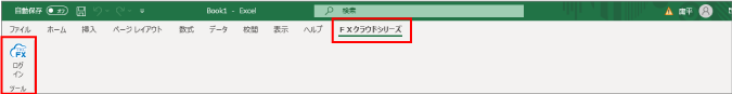 作成済みのシートをExcelで起動し、[FXクラウドシリーズ]タブの[ログイン]をクリックします。