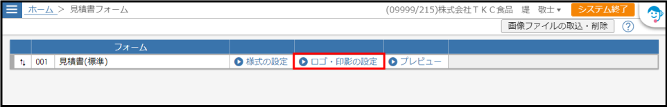 1該当行の[ロゴ・印影の設定]ボタンをクリックします