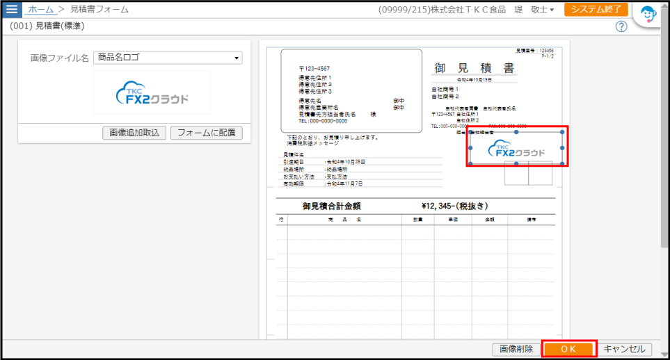 ここでは、取込済みの画像ファイルを、見積書本体または表紙に配置する方法を説明します。